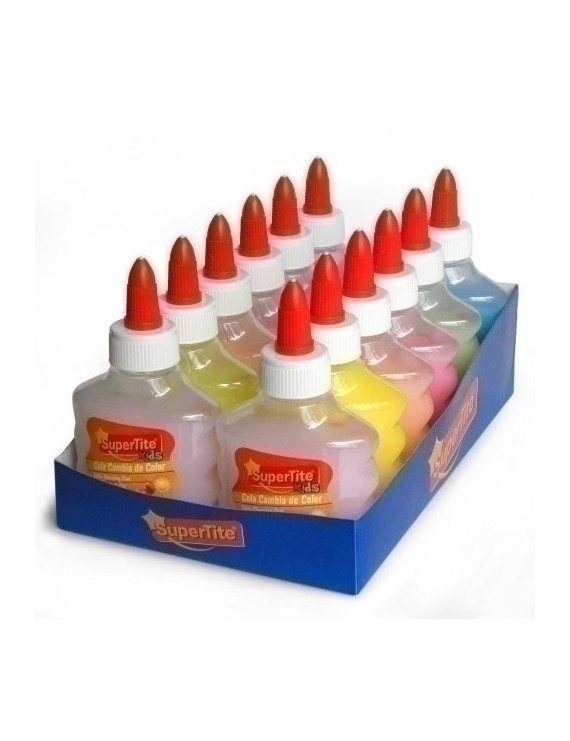 Cola para proyectos escolares y manualidades con acabados diferentes (cambia de color con la luz del sol). Sin disolventes (conforme EN71-1-2-3). Perfecto para hacer SLIME.