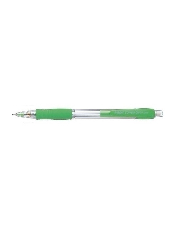 Portaminas de plástico con Grip de caucho en la parte inferior y cuerpo transparente para minas de 0,5 mm que incorpora goma de borrar en la parte superior. Disponible en diferentes colores de grip y cuerpo.