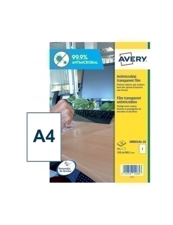 Etiqueta adhesiva removible antibacteriana de poliéster transparente para: escritorios, libro, portátiles, etc. Su componente activo actúa eliminando las condiciones en que los microbios sobreviven y se propagan con una protección del 99,9%.
