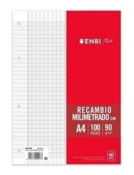 Probablemente los mejores recambios del mercado, en papel extra blanco de 90 gramos, en los que se puede escribir con todo tipo de tintas sin que traspase el papel, ¡incluso a doble cara! La Intensidad del rayado está perfectamente estudiada y calculada, para hacer un producto perfecto. Se presenta en paquetes de 100 hojas en tamaño A4 con 4 taladros.