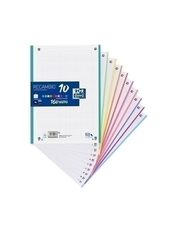 Recambio de hojas sueltas de 90 gramos con diez bandas de color, 4 taladros y scribzee, para que puedas escanear tus notas manuscritas y tenerlas en el móvil, tablet u ordenador. Un paquete multicolor para los que prefieran llevar hojas sueltas por asignatura en sus carpebloc, carpetas, etc...