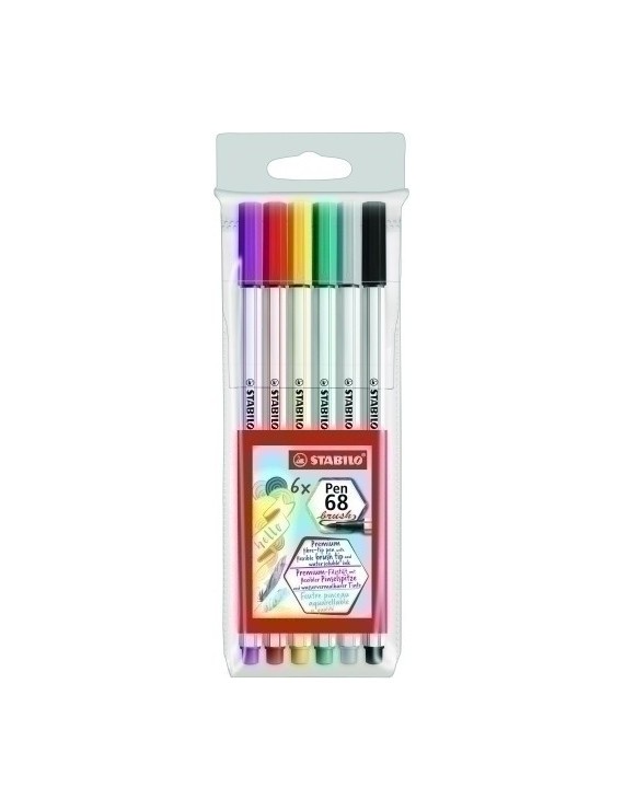 El rotulador con punta de pincel flexible es la nueva incorporación a la familia de rotuladores Pen 68. Puedes controlar los trazos de forma precisa variando la presión de la punta para crear líneas más finas o más gruesas y así dibujar bonitas letras. Su tinta con base al agua permite crear efectos sorprendentes como la mezcla de colores o acuarelar los trazos y detalles. Ideal para los que empiezan con el lettering o para artistas avanzados que quieran cubrir detalles pequeños, hacer sombras o estampaciones. Estuche con colores lila, carmín, amarillo, azul turquesa, gris claro y negro.