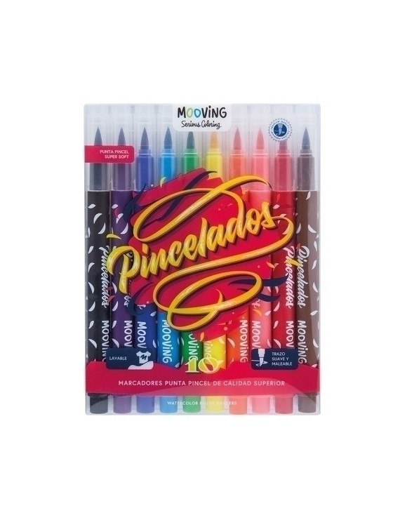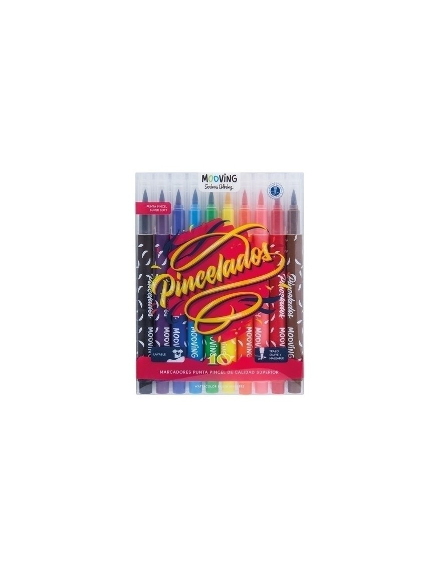Rotuladores lavables en colores brillantes de gran poder cubriente. Tinta a base de agua. Punta pincel de 4 mm, para trazos suaves. Tapa de cierre segura y ventilada.