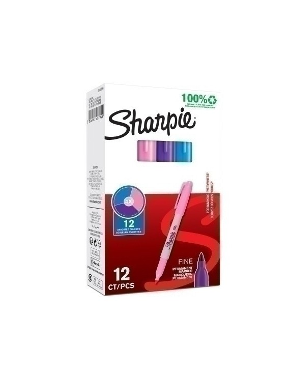 Rotulador Permanente Sharpie Fine Surtido Caja De 12 (4X Rosa, 4X Morado, 4X Turquesa)