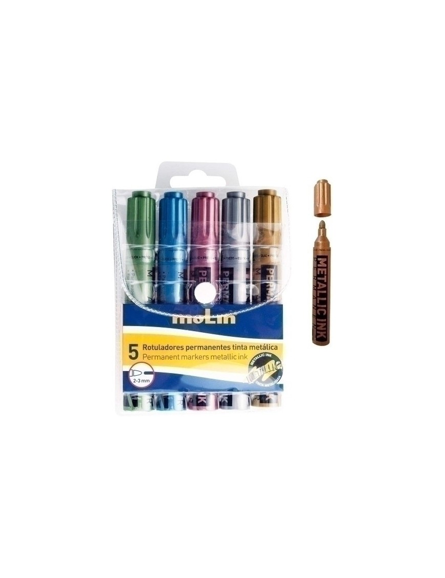 Rotuladores permanentes de tinta con base agua, en colores metálicos; punta cónica y trazo 2-3 mm. Un marcador para rotular casi todo tipo de superficies.