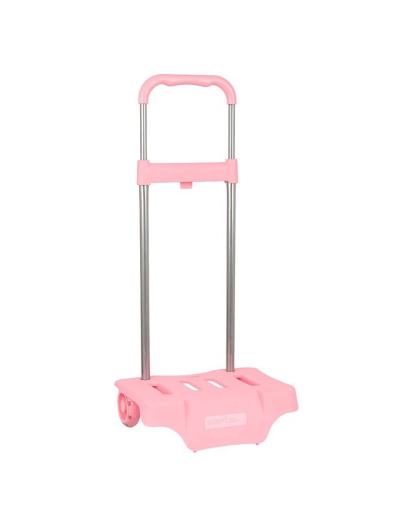 Fabricado en España. Ruedas antivibración y silenciosas con cubierta de goma transparente. Sistema de sujeción para mochilas UNIVERSAL, para mochilas de hasta 32 x 16 x 44 cm. Asa extraible. Medidas : cerrado 30 x 23 x 55 cm, Abierto 30 x 23 x 85 cm Material principal : Polipropileno muy resistente y acero pintado. Disponible en 19 colores. Modelo pantentado por SAFTA.