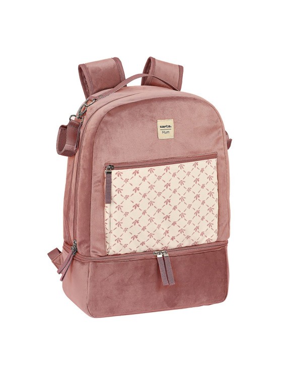 Compartimento principal de gran capacidad con bolsillos interiores. Doble cursor en cremallera principal para facilitar su apertura. Bolsillo frontal con cremallera. Bolsillo termo en la base. Bolsillo termo en el lateral ideal para llevar biberones. Soportes ideales para colgar la mochila del carro del bebé.