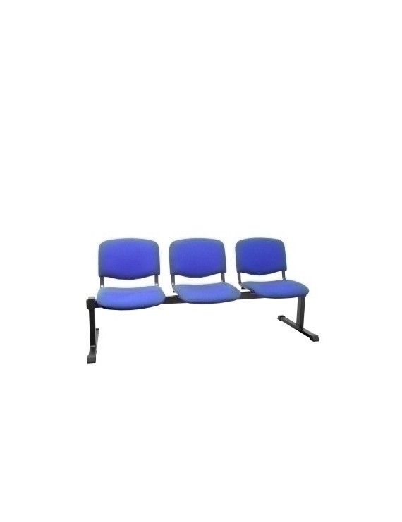 Bancada de espera de tres plazas con estructura negra de hierro y tapizado en color, en asiento y respaldo. Un asiento y un respaldo ergonómicos, con espuma de 30 mm de grosor y 24 kg/m³ de densidad; travesaño de hierro de 40 x 80 x 1500 mm; sistema de enganche en forma de U al capuchón de hierro y estructura de las patas de tubo rectangular de 80 x 40 mm de 1,2 mm de grosor. Un diseño, para usuarios de un máximo de 100 kg, que se adapta a cualquier sala de espera de interior. Medidas: 810 x 1780 x 600 mm (asiento: 480 x 420 mm).
