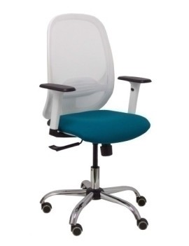 Silla de oficina ergonómica con mecanismo sincro y regulable en altura. Respaldo fijo ergonómico de malla transpirable de nailon en color, con refuerzo lumbar ajustable. Asiento ergonómico acolchado hecho de madera de 10mm de grosor, espuma de poliuretano inyectado de 6 cm de grosor, densidad 50 kg/m³ y tapizado en tejido BALI de color. Brazos regulables en altura. Mecanismo sincro multiposición con regulación de la tensión del sincro. Tensión de la basculación y bloqueo del respaldo. Regulable en altura mediante cilindro de gas. Giratoria 360º. Cilindro de gas negro. Base piramidal de poliamida y fibra de vidrio, de alta resistencia de 5 radios en color negro; y ruedas de parqué. Una silla de fácil montaje para un uso extremo de 24 horas.