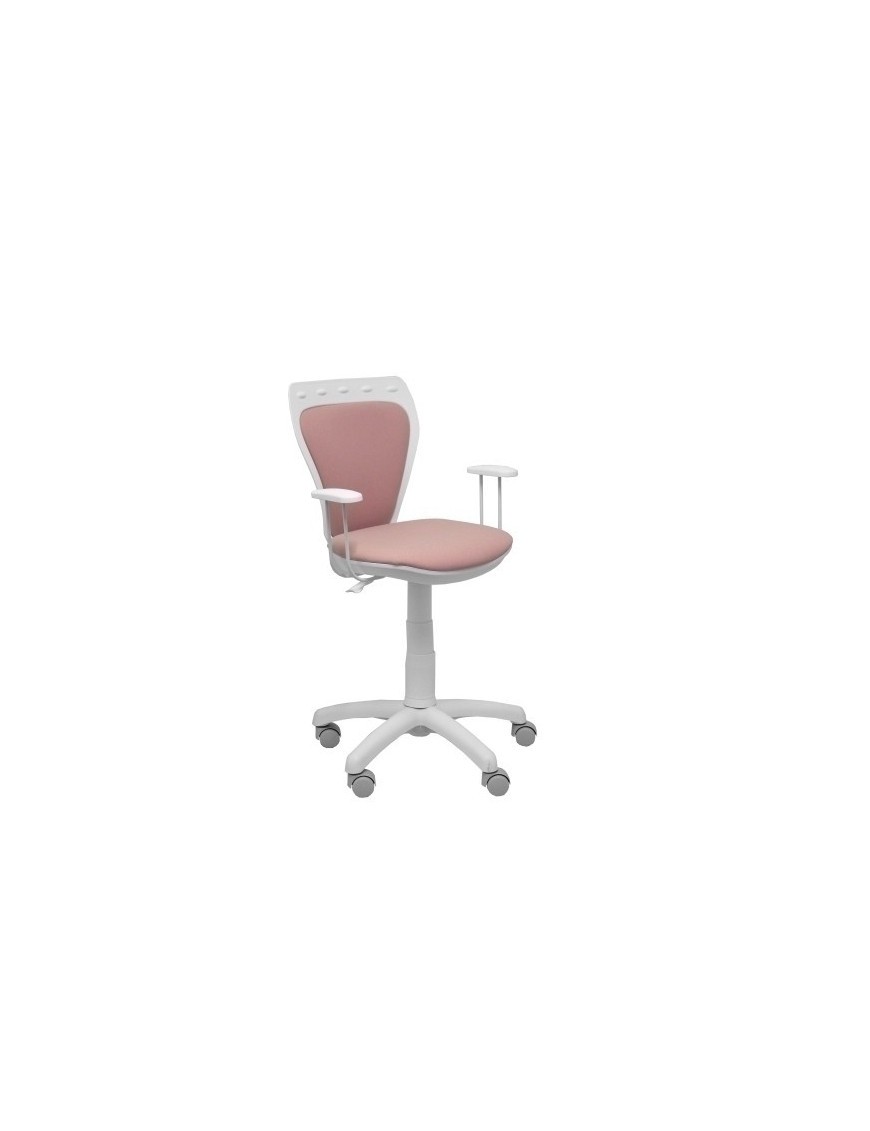 Silla ergonómica juvenil con brazos, mecanismo de contacto lama y regulable en altura. Brazos fijos color blanco. Carcasas exteriores en PVC color blanco. Asiento ergonómico con espuma de 4 cm de grosor y densidad 25 kg/m³. Respaldo y asiento tapizados en tejido ERA de color. Mecanismo de contacto lama. Regulable en altura mediante cilindro de gas. Giratoria 360º. Telescópico color blanco. Base poliamida de alta resistencia de 5 radios y 50 cm de diámetro, en color blanco; y ruedas autofrenantes de nailon color gris. Una silla de fácil montaje para un uso moderado de 4 a 6 horas.