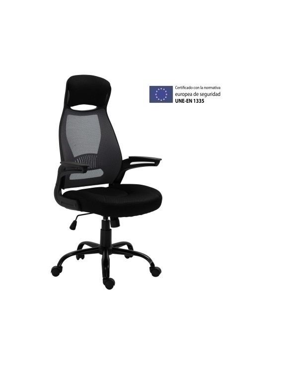 Silla operativa ergonómica con mecanismo basculante; regulable en altura mediante pistón a gas y sistema de bloqueo en la basculación; respaldo ergonómico con reposacabezas integrado para una mayor comodidad del usuario para largas horas de trabajo; refuerzo lumbar para una óptima postura corporal y mejor adaptabilidad de la espalda; base metálica; estructura giratoria 360º de 5 radios y 5 ruedas de doble esfera sin freno; apoyabrazos de poliamida reforzado con fibra de vidrio; tapizada en suave malla transpirable y asiento de espuma inyectada con relleno de alta densidad. Recomendada para todo tipo de suelos. Medidas: 1295 x 630 x 585 mm.
