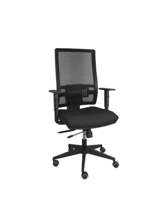 Silla de oficina ergonómica con mecanismo sincro con traslak y regulable en altura. Respaldo de maya 100% PES, con apoyo lumbar regulable y marco en PVC. Asiento ergonómico con interior de madera laminada de 2cm de grosor con espuma inyectada, densidad 50 kilos y grosor 5cm. Tapizado en tejido BALI de color. Brazos regulables en altura. Regulable en altura mediante cilindro de gas. Giratoria 360º. Base piramidal de fibra de vidrio de 5 radios y 70 cm de diámetro, en color negro; y ruedas de goma/parquet con rodamiento de goma, especiales para suelos delicados. Una silla de fácil montaje para un uso extremo de 24 horas.