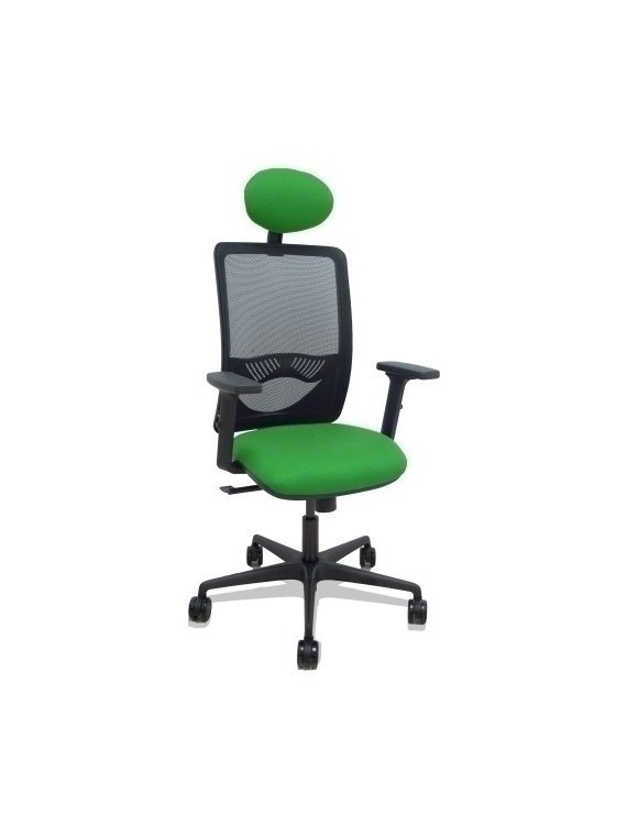 Silla de oficina ergonómica con mecanismo sincro, brazos regulables 2D y ajustable en altura. Respaldo ergonómico de malla transpirable 100% PES, en color. Asiento ergonómico con interior de madera con espuma de 50mm de grosor y densidad 25 kg/m³; tapizado en tejido BALI de color. Brazos regulables. Mecanismo sincro con regulación de la tensión, que permite la regulación del respaldo y el asiento por separado. Soporte lumbar regulable. Cabecero fijo tapizado. Regulable en altura mediante cilindro de gas. Giratoria 360º. Pistón de gas negro secretaria. Base poliamida de alta resistencia de 5 radios y 65 cm de diámetro, en color negro. Ruedas de nylon de 65mm. Una silla de fácil montaje para un uso intensivo de 8 horas.
