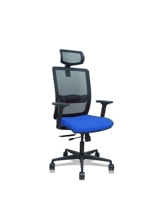 Silla de oficina ergonómica con mecanismo sincro con traslack y ajustable en altura. Respaldo ergonómico de malla transpirable 100% PES, con apoyo lumbar y cabecero regulable. Asiento ergonómico con interior de madera con espuma inyectada de 5cm de grosor y densidad de 50 kg/m³. Tapizado en tejido BALI de color. Brazos regulables en 2D. Mecanismo sincro con regulador de tensión. Regulable en altura mediante cilindro de gas. Giratoria 360º. Base de poliamida de 5 radios y 68 cm de diámetro, en color negro; y ruedas de nailon de 65 mm, con eje central de acero. Una silla de fácil montaje para un uso intensivo de 8 horas.
