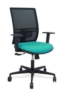 Silla de oficina ergonómica con mecanismo sincro con traslack y ajustable en altura. Respaldo ergonómico de malla transpirable 100% PES, con apoyo lumbar y cabecero regulable. Asiento ergonómico con interior de madera con espuma inyectada de 5cm de grosor y densidad de 50 kg/m³. Tapizado en tejido BALI de color. Brazos regulables en 2D. Mecanismo sincro con regulador de tensión. Regulable en altura mediante cilindro de gas. Giratoria 360º. Base de poliamida de 5 radios y 68 cm de diámetro, en color negro; y ruedas de nailon de 65 mm, con eje central de acero. Una silla de fácil montaje para un uso intensivo de 8 horas.