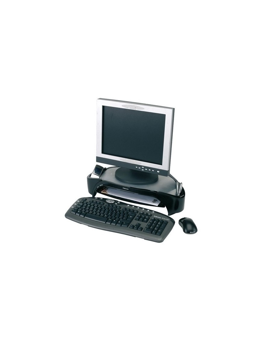 Ajusta la pantalla a la altura de los ojos para prevenir malas posturas. Diseño triangular que permite un puesto de trabajo despejado. Incluye bandeja porta documentos. Ajustable a tres alturas: 100mm, 115mm y 130mm. Soporta monitores TFT hasta 21" o hasta 10 Kg. de peso. Dimensiones producto (Alto x ancho x profundo) mm 101.60 x 477.80 x 328.60. Color Negro. Tipo De Material Plástico