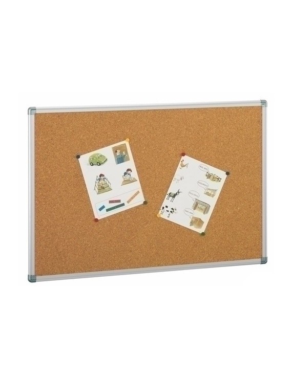 Marco de aluminio y cantoneras decorativas. Superficie de corcho de 5 mm de espesor y sólido soporte de madera aglomerada de 7 mm. Suministrados con los elementos de fijación. 100% Reciclable.