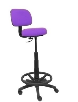 Taburete de trabajo giratorio con altura regulable mediante cilindro de gas y aro reposapiés cromado, que proporciona un gran descanso a los pies. Asiento hecho con acero; regulable en altura mediante cilindro de elevación a gas de 18 cm (siendo la altura de su posición más baja de 52,5 cm y la altura en su posición más alta de 70,5 cm); giratoria 360º; telescópico color negro; base de nailon de alta resistencia, 5 radios y 60 cm de diámetro, en color negro; aro reposapiés cromado de 40 cm de diámetro; y ruedas de nylon. Un taburete de fácil montaje para un uso intensivo de 8 horas.