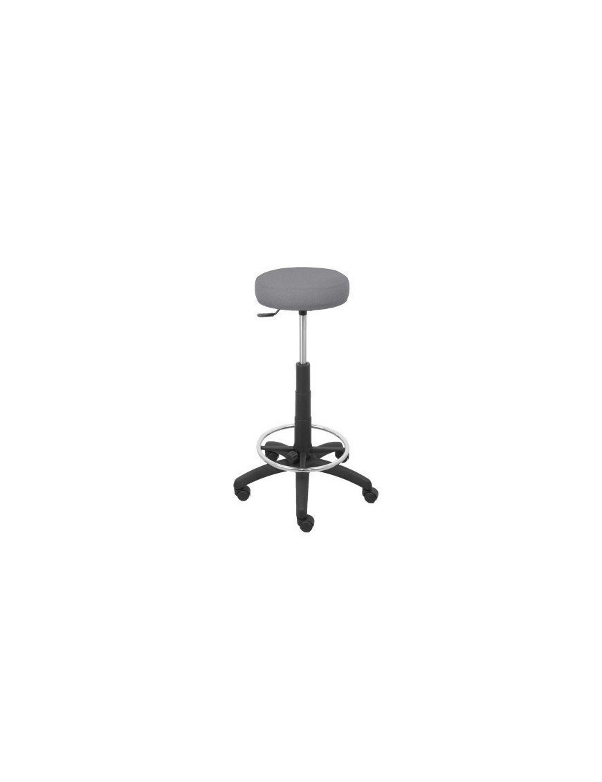 Taburete de trabajo giratorio con altura regulable mediante cilindro de gas. Asiento tapizado en tejido BALI de color, hecho con tablero aglomerado de 16 mm de grosor y acolchado de espuma de 8 cm de grosor y 30 Kg/m³. Regulable en altura mediante cilindro de elevación a gas. Giratoria 360º. Base de nylon de 5 radios y 60 cm de diámetro, en color negro. Ruedas de nailon con rodamiento de goma y eje central de acero; y aro reposapiés cromado de 40 cm de diámetro. Un taburete para un uso moderado de 4 a 6 horas para oficina, taller y hogar.