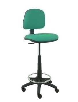 Taburete de trabajo giratorio con altura regulable mediante cilindro de gas. Asiento tapizado en tejido BALI de color, hecho con tablero aglomerado de 16 mm de grosor y acolchado de espuma de 8 cm de grosor y 30 Kg/m³. Regulable en altura mediante cilindro de elevación a gas. Giratoria 360º. Base de nylon de 5 radios y 60 cm de diámetro, en color negro. Ruedas de nailon con rodamiento de goma y eje central de acero; y aro reposapiés cromado de 40 cm de diámetro. Un taburete para un uso moderado de 4 a 6 horas para oficina, taller y hogar.
