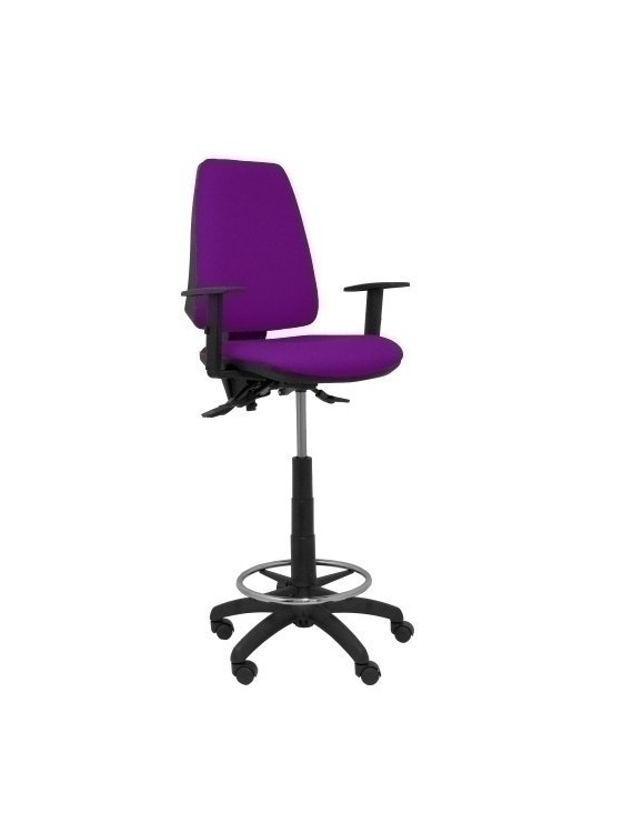 Taburete ergonómico regulable en altura, con mecanismo asincro y brazos regulables de serie. Respaldo ergonómico con interior de polipropileno, refuerzo panal de 20mm de grosor, espuma de 5 cm de grosor y densidad 20 kg/m³. Asiento ergonómico con interior de madera laminada de 2 cm, espuma de 5 cm de grosor y densidad 25 kg/m³. Ambos tapizados en tejido BALI de color. Mecanismo asincro. Regulación del respaldo en altura e inclinación. Regulable en altura mediante cilindro de gas. Giratoria 360º. Telescópico color negro. Aro reposapiés cromado. Base poliamida de alta resistencia de 5 radios y 55 cm de diámetro, en color negro; y ruedas de nailon. Un taburete de fácil montaje para un uso moderado de 4 a 6 horas.