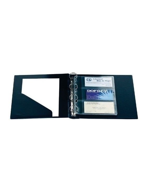 Carpetas de cuarto para la clasificación y archivo de tarjetas donde podrá ir aumentando las fundas según sus necesidades. Acabado en PVC de máxima calidad. Incluye 10 fundas interiores.