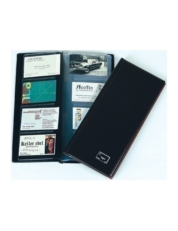 Perfectos para la clasificación y archivo de las tarjetas de visita. Fabricado con fundas de PVC soldadas al lomo. 20 fundas con capacidad para 160 tarjetas.