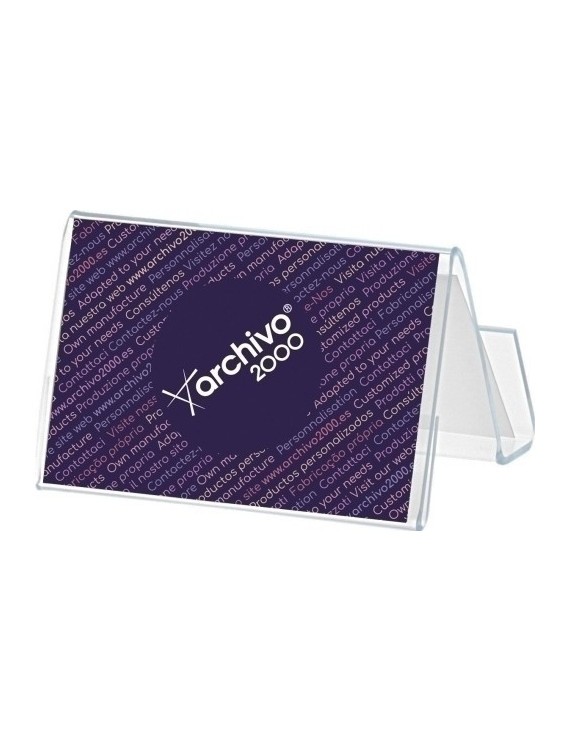 Expositor portatarjetas de sobremesa con 2 compartimentos formato horizontal. Un compartimento en la parte trasera para poner una tarjeta de visita y otro en la parte delantera para colocar un taco de tarjetas.